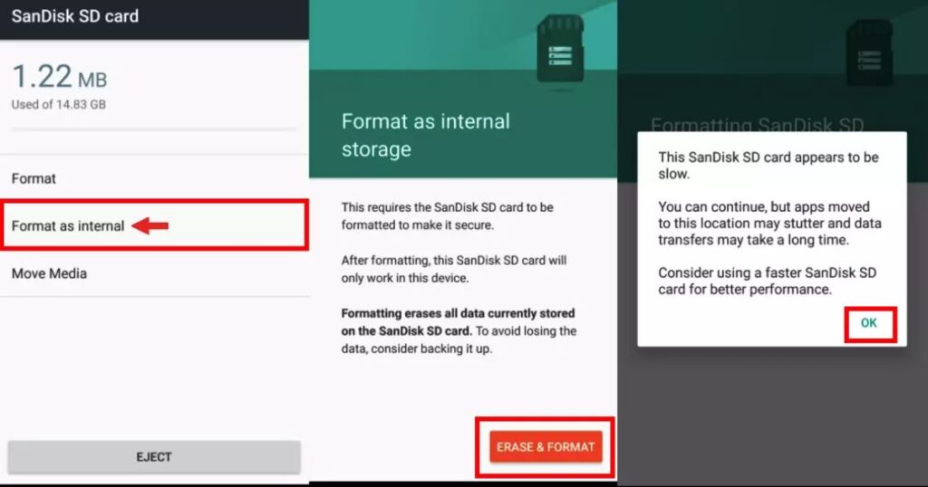 After setup, the SD card becomes encrypted and locked to your phone, meaning you can’t use it on another device unless you reformat it again. You’ll also need to keep the SD card in the phone at all times, or some apps might stop working. While this method can help you move apps to SD card more effectively, it’s not supported by all phones some brands like Samsung may not offer this feature.
